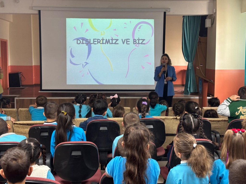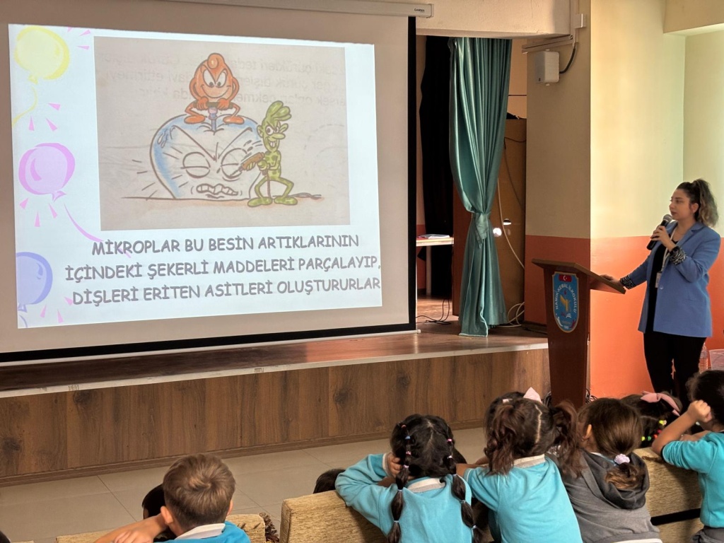 Koruyucu Ağız ve Diş Sağlığı Hizmetleri kapsamında; okulumuz öğrencilerine yönelik olarak İlçe Sağlık Müdürlüğünde görev yapan Dt.Fatma Nur SAYGILI tarafından ağız ve diş sağlığı konularında eğitim verilmiştir.