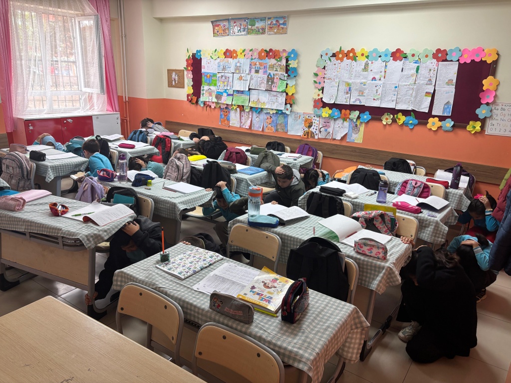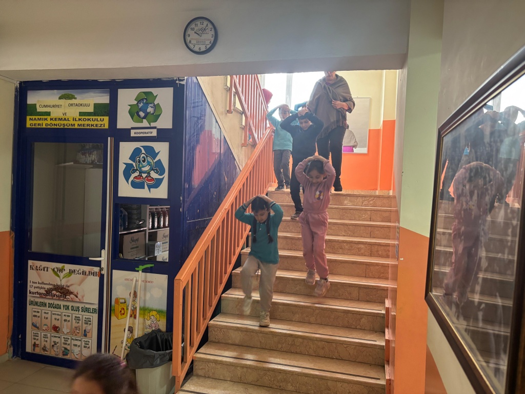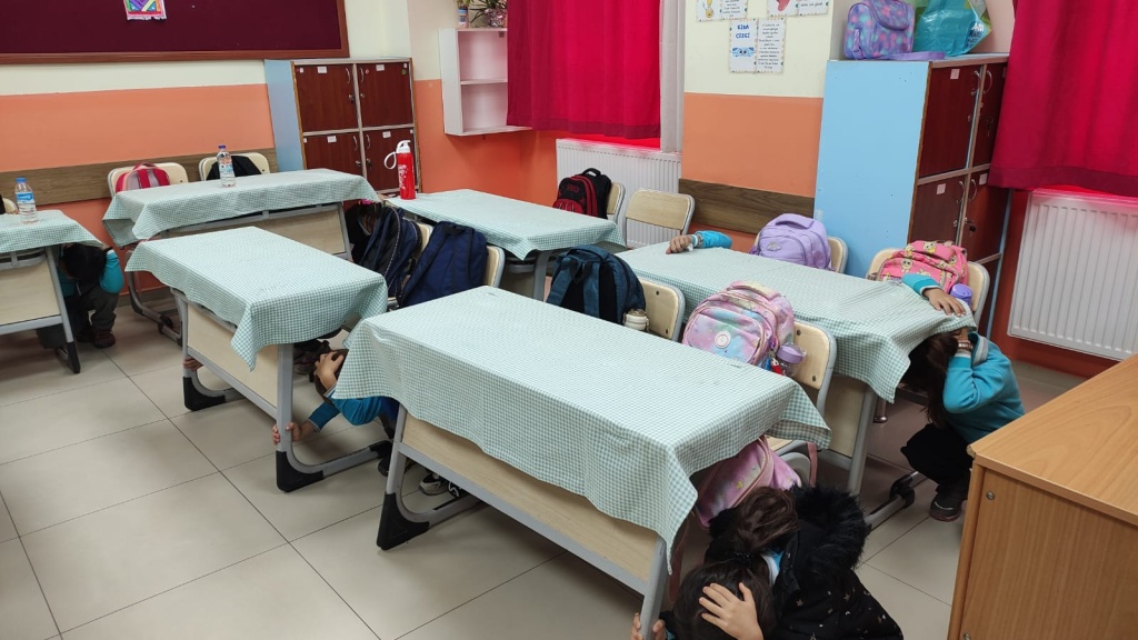 Okulumuzda İlçe Milli Eğitim Müdürümüz Sayın Haluk ÖZDEMİR ve Şube Müdürümüz Sayın Mehmet Sefa YILDIZ'ın katılımlarıyla ''Yeşil Vatan - Benim Okulum Geleceğe Çare" Etkinlikleri Ekim Ayı Faaliyetleri kapsamında eş zamanlı Deprem Tatbikatı düzenlendi.